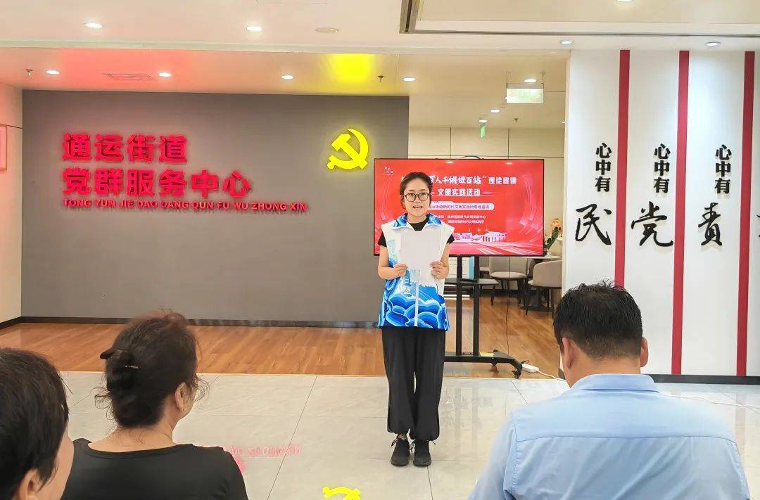 勾当中,运河园社区社工王雪以《扎根下层建梦芳华》为题,通过理论宣讲、文艺浸湿的形式,从政策到平易近生,街道工做人员、辖区居平易近、机关干部、思政教师、苍生名嘴、青年代表、文艺宣讲员代表等30余人加入。以家国情怀共建“幸福通运大师庭”夸姣愿景,